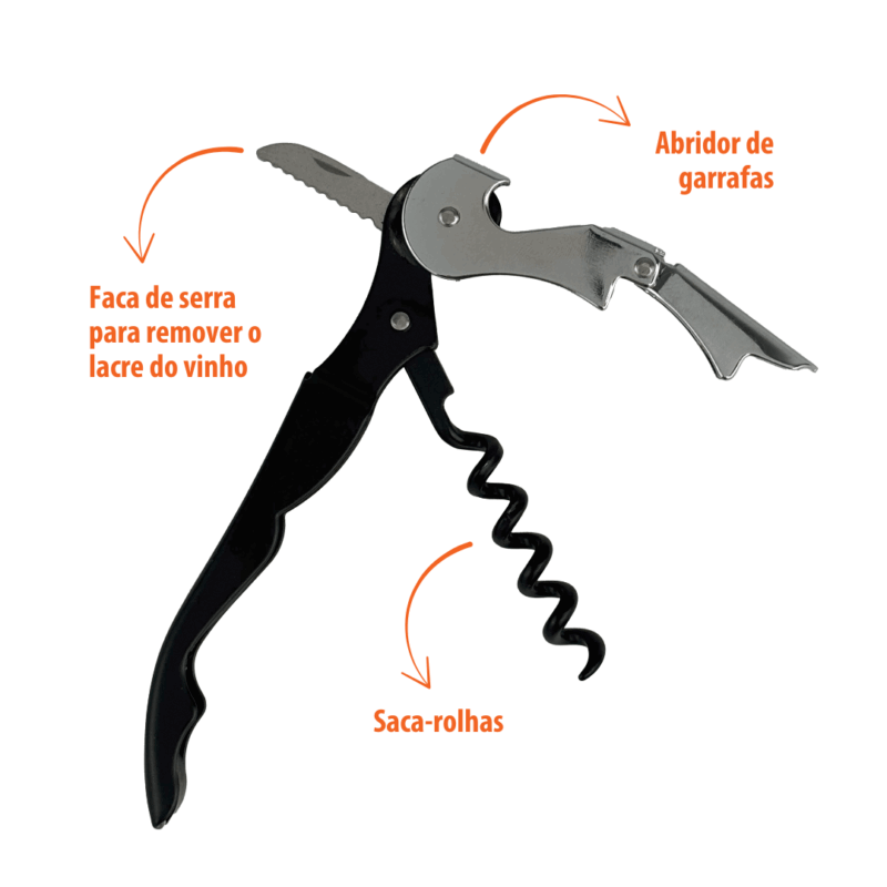 Porque ele é dois em um! Além de abrir vinhos com eficiência e sem esforço, também serve para abrir garrafas. Compacto e durável, é um item indispensável para se ter sempre à mão em casa.