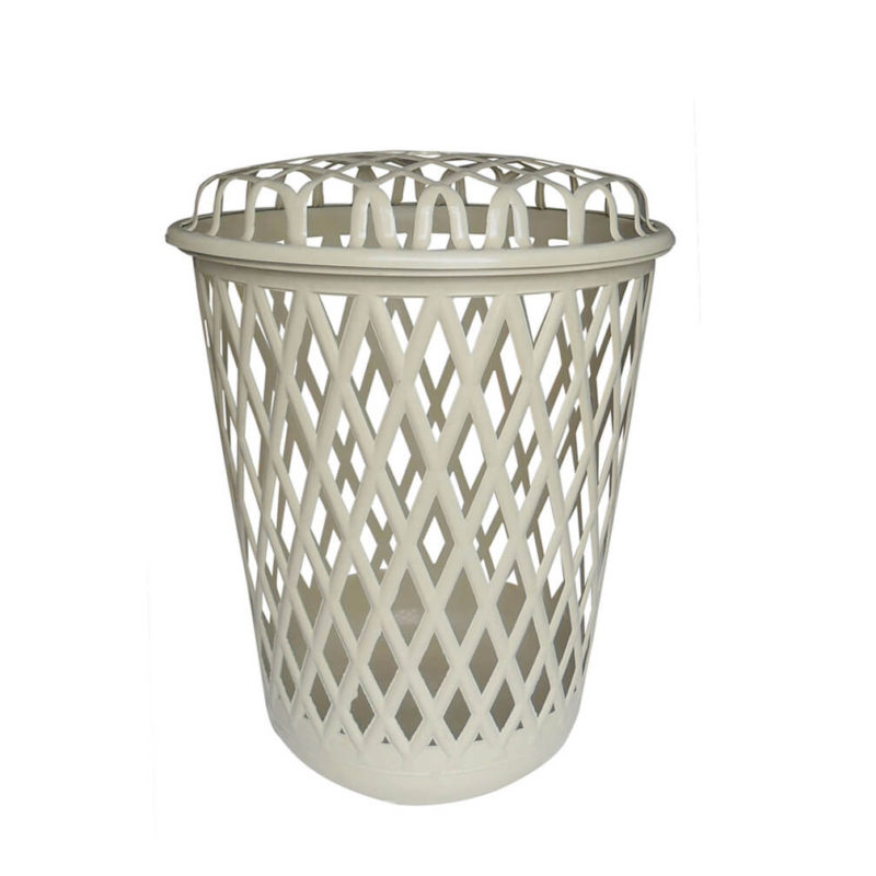 O cesto telado de 65 litros é ideal para organizar as roupas para lavar.