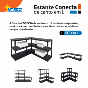 Estante Conecta de Canto em L Antares – Modular, Resistente e com Altura Regulável