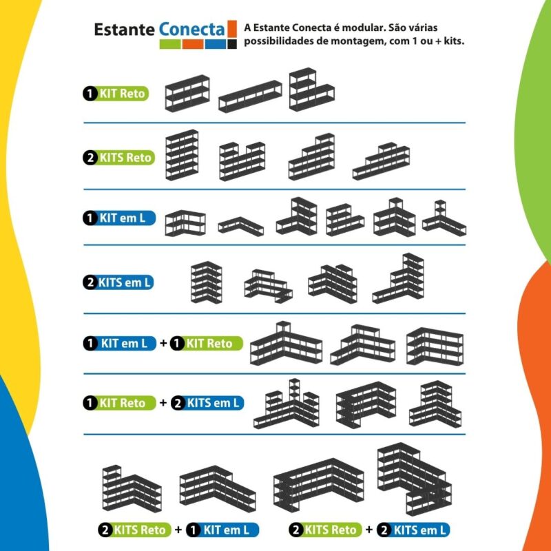 Combine com outras estantes da linha Conecta para criar composições maiores.