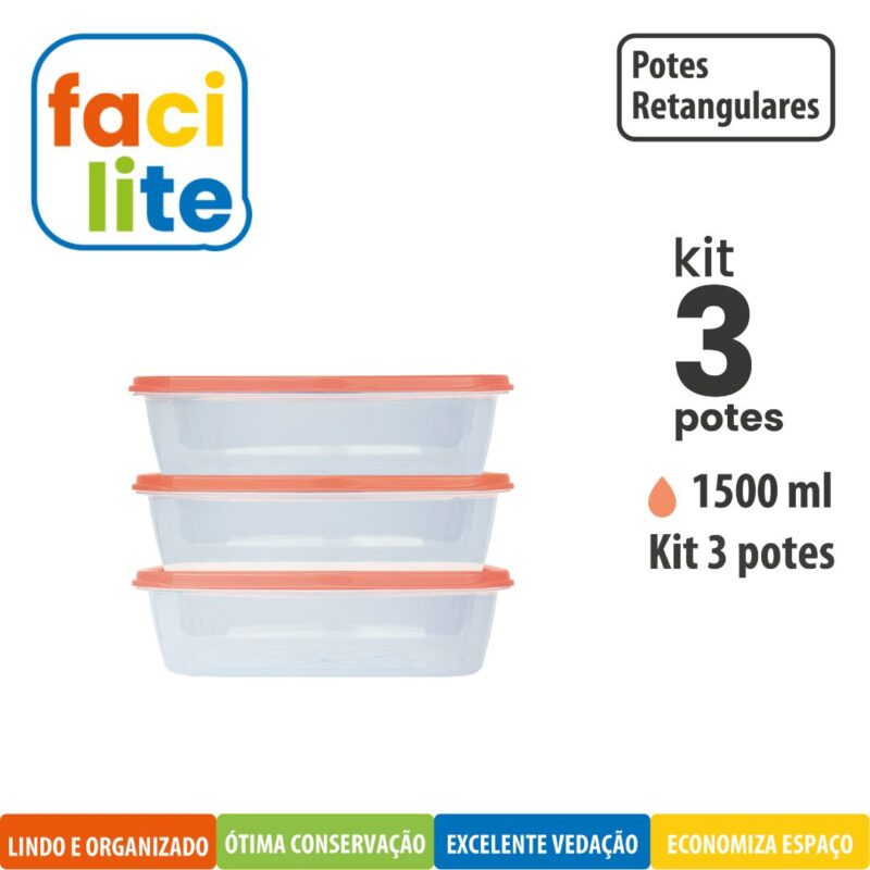 Kit Facilite de Potes Raso Retangulares – com 3 UNID 1500 ml