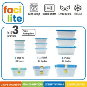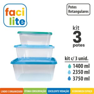 Kit Facilite de Potes Fundo Retangulares com 3 UNID de 2400ml
