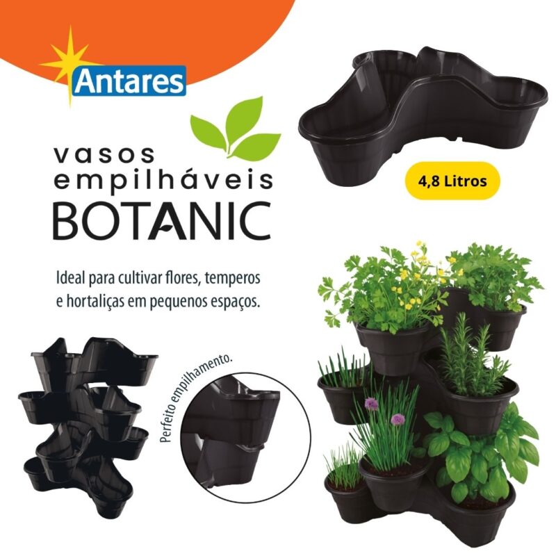 Vaso Empilhável Botanic ideal para hortas verticais, apartamentos e pequenos espaços. Perfeito para frutas, temperos, suculentas e flores. Otimize seu espaço com praticidade e estilo.